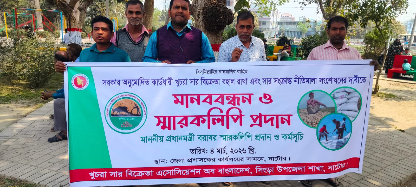নাটোরে সার বিক্রেতা এ্যাসোসিয়েশনের অব বাংলাদেশের মানববন্ধন ও স্মারকলিপি প্রদান